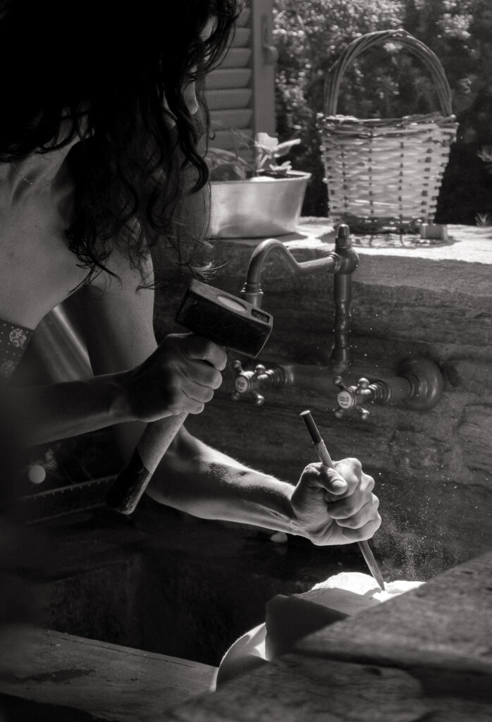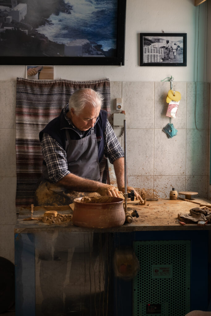 Life in the Cyclades. The intense blue of the Mediterranean Sea, raw pieces of clay and marbles shaped in the sun, and the making of the iconic domakias.